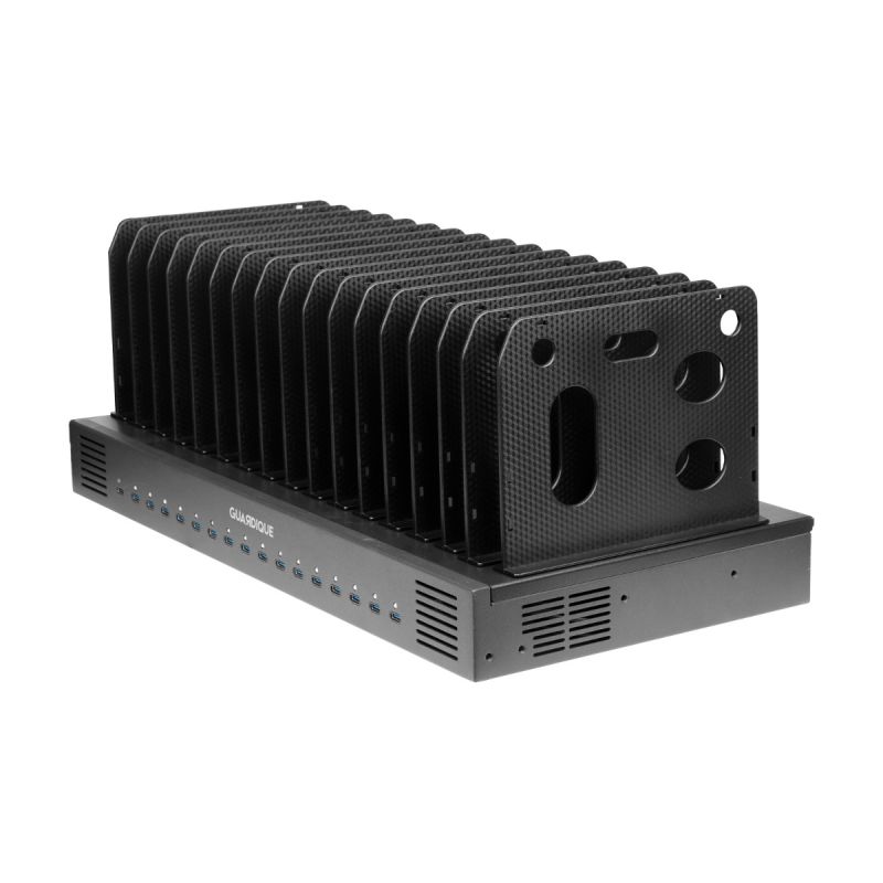 - Njut av laddning med hög kapacitet – 16 individuella laddportar ger upp till 1000W laddkapacitet för samtidig USB-C-laddning av Chromebooks, telefoner, surfplattor eller andra bärbara enheter.