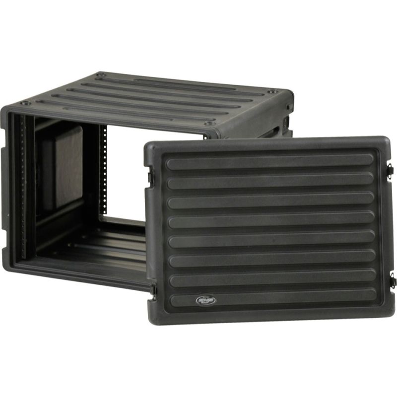 The re-designed Roto-molded Rack Cases meet the needs of musicians and pro audio engineers. The Roto Racks include a gasketed full front and rear covers for easy access. These re-designed Roto Racks have a exterior design that includes a recognizable bar design that signifys the rack size on the front and rear covers with interlocking capabilities for a secure stack with Roto Racks and the Roto Shallow Racks. Recessed steel, Mil-Spec black twist latches, and heavy-duty flush handles, front and rear rack rails with a rack depth of 17.6” so gear can now be mounted front and rear with the supplied rackmount clips. The new US Series is the ultimate in American technology with its roto molded tuff shell, front and rear lids, recessed heavy-duty twist latches, molded in handles, shock absorbing rubber feet and the recognizable patented deep Roto-X pattern for solid stackability. The unique molded-in unbendable valance and steel threaded rails with self tapping screws make the US Series racks convenient to use and the most durable.