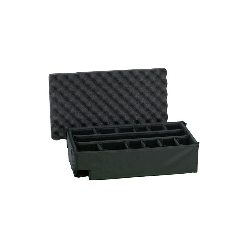 he Peli Storm Case Padded Divider Set is designed to provide the ability to create custom compartments for the iM2500 Peli Storm case. The divider sets contain a large tray, 2 long, 10 short and 2 wheel well covers and a convoluted foam insert for the lid. Rearrange compartments as needed by adding or subtracting dividers using the sturdy hook and loop fasteners.
